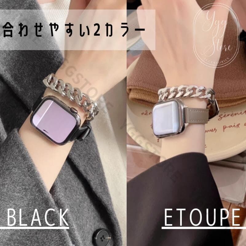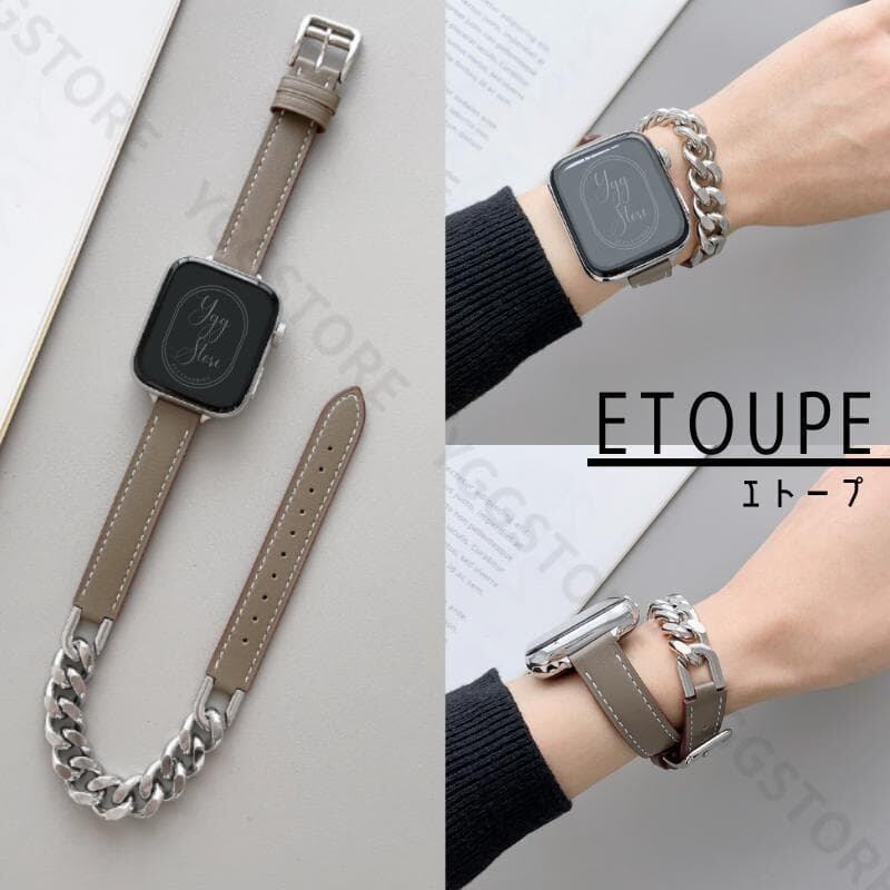 商品名:アップルウォッチ 二重 グルメット チェーン コンビ バンド W ダブル 多重 二重巻き Apple Watch メタル ステンレス 40mm 41mm 42mm 44mm 45mm 46mm 49mm