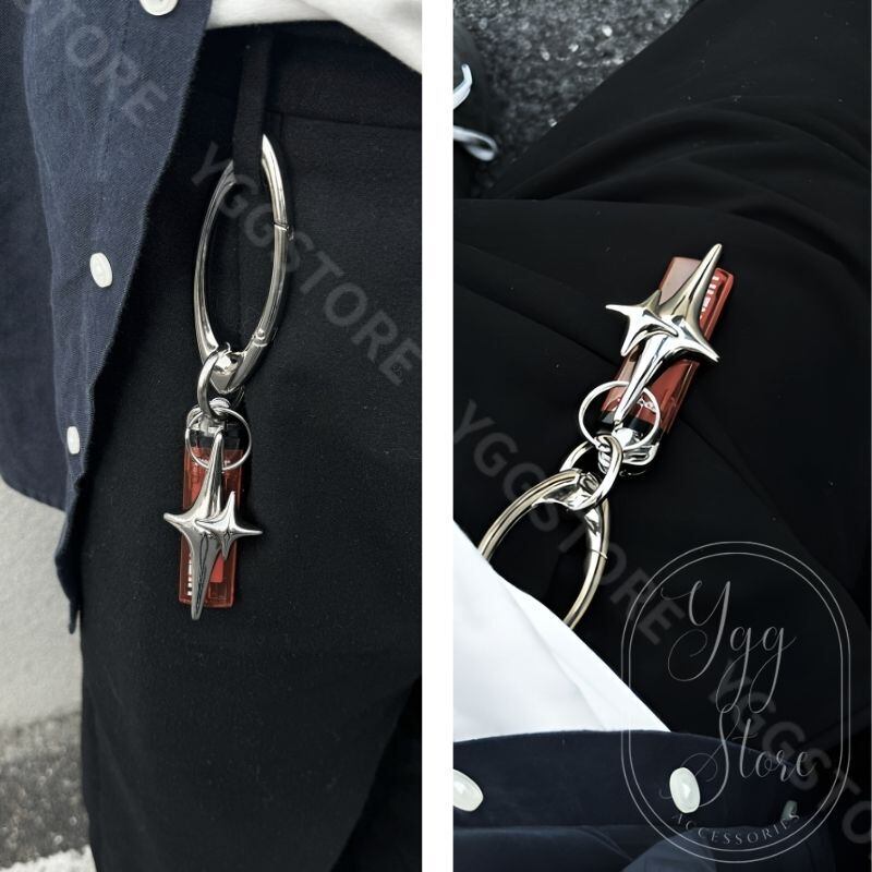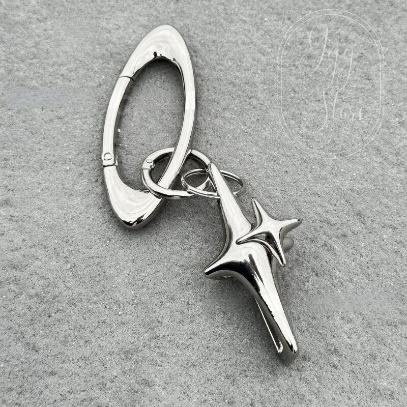 ライターケース キーホルダー キーリング スター 四芒星 カラビナ付き シルバー スター バッグチャーム タバコ 喫煙具 シガレットケース オシャレ小物 ストリート アウトドア