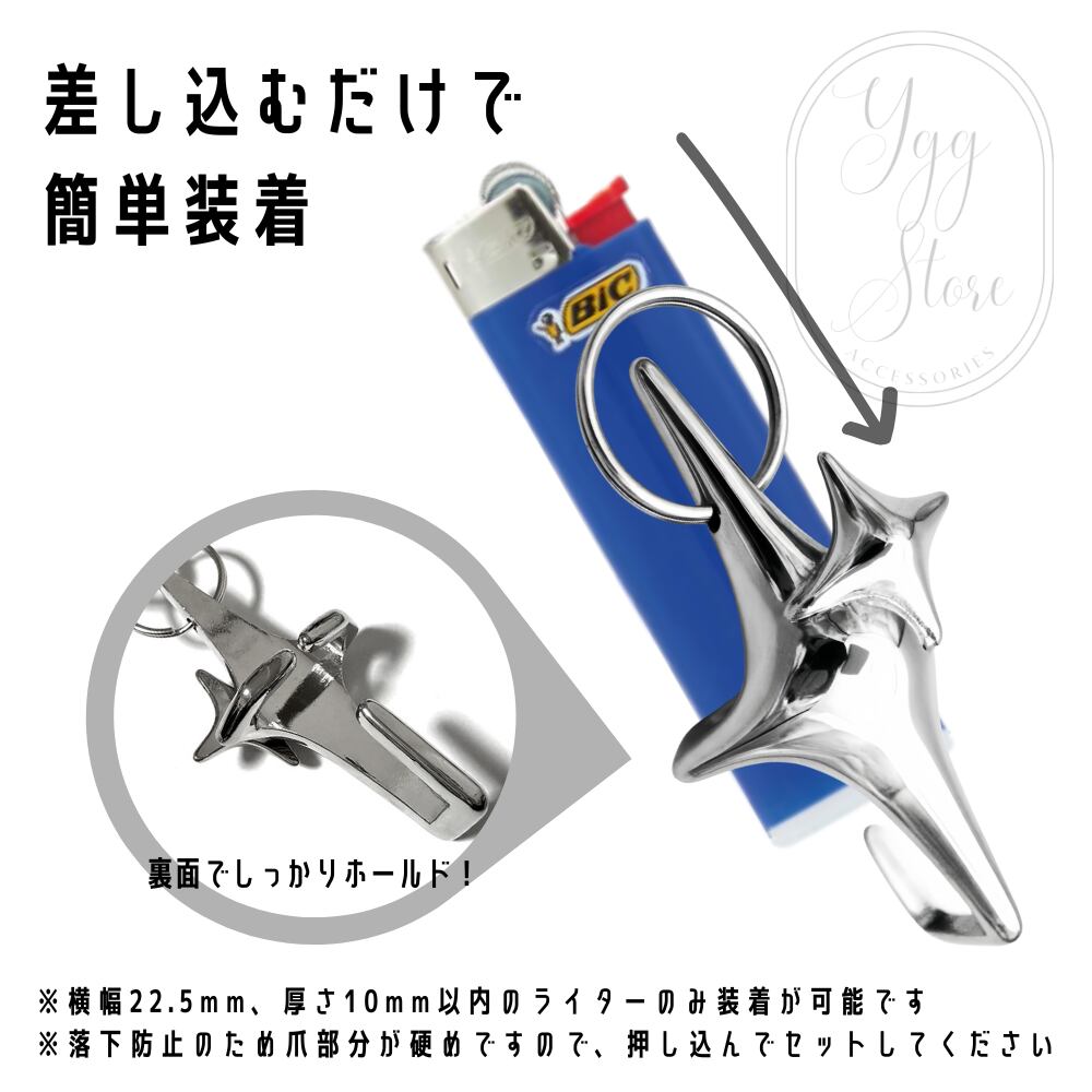 ・横幅21mm、厚さ11mm以内のライターのみ装着が可能です