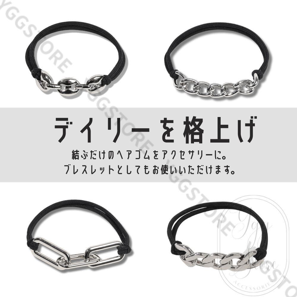 ブレスレット ヘアゴム ヘアタイ チェーン チャーム付き ブラック シルバー ヘアアクセサリー レディース カジュアル 小物 大人 モノトーン ギフト フリーサイズ アソート メタル 喜平チェーン 1点