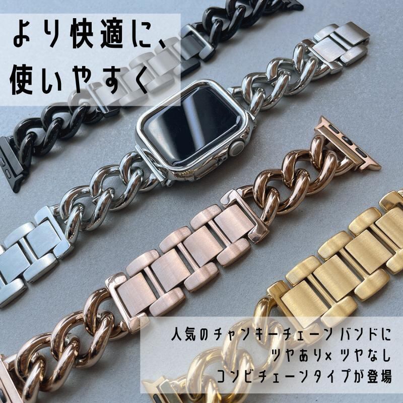 【より快適に使いやすく】人気のアップルウォッチ チャンキーチェーン バンドにツヤあり×ツヤなし コンビチェーンタイプが登場!!