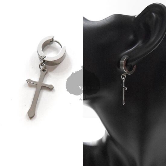 商品名:YGG★クロスチャーム付き フープピアス 銀 シルバー 角四角 太め 十字架 18 18ゲージ アクセサリー ユニセックス
