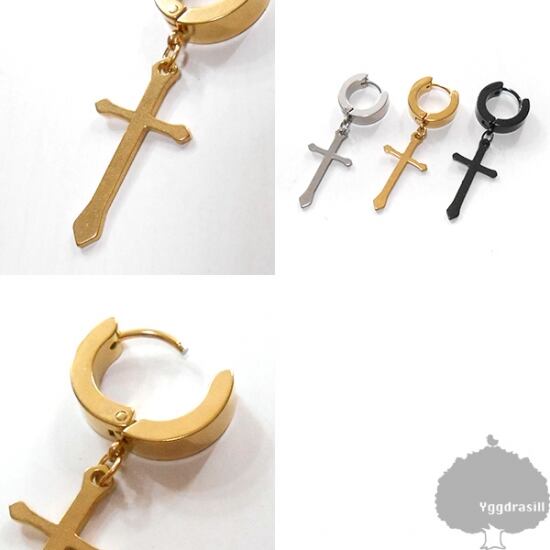 商品名:YGG★クロスチャーム付き フープピアス ゴールド 金 角四角 太め 十字架 18G 18ゲージ 1個 片耳