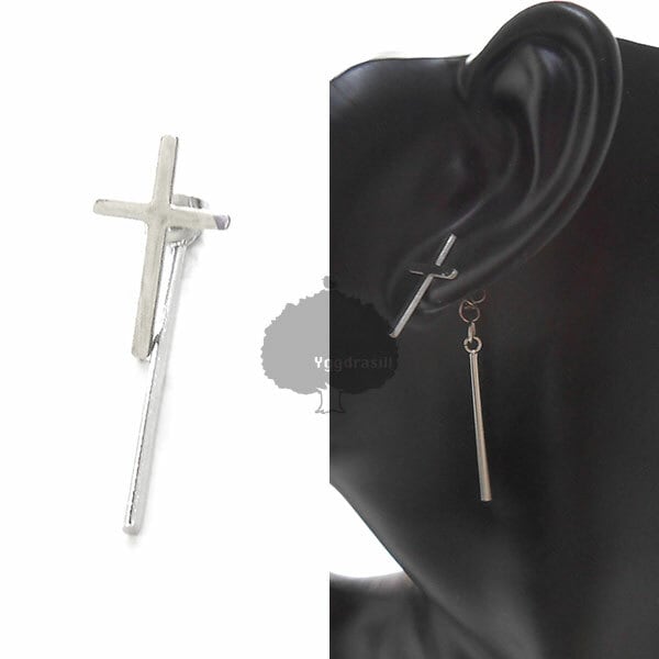商品名:YGG★人気 クロス&バーモチーフ付き ロングピアス シルバー 十字架 男女兼用 ジミン BTS 防弾少年団 1個 片耳 ユニセックス 男女兼用 gd