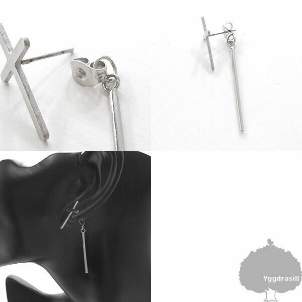 クロス&バーモチーフ付き ロングピアス シルバー 十字架 男女兼用