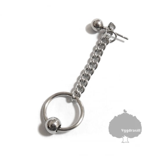 商品名:YGG★新品 ワンボールフープリング付 チェーン ピアス BTS ジン着 チェーン太め スイング 銀 シルバー サージカルステンレス 1個 片耳