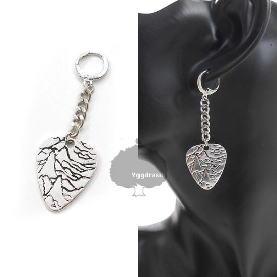 ピック モチーフ ドロップ ピアス シルバー ひび割れデザイン