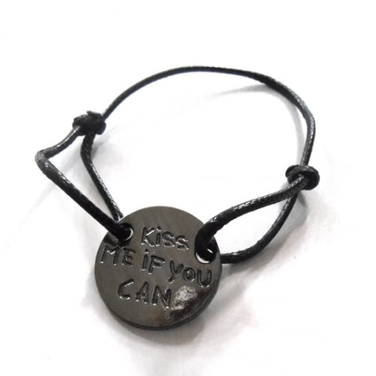 Kiss me if you can ラウンド プレート付き ブレスレット 黒銀 ブラック ガンメタ コードブレス アクセサリー