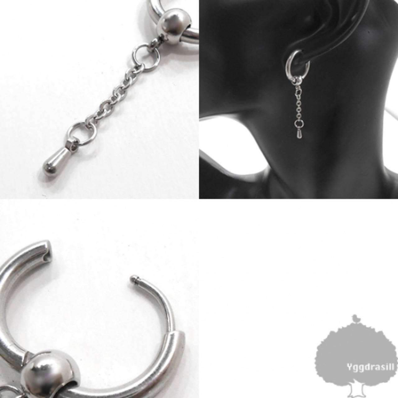 商品名:YGG★新品 ドロップ モチーフ チェーン フープピアス シルバー 銀 リング 男女兼用 BTS 韓流 1個 片耳