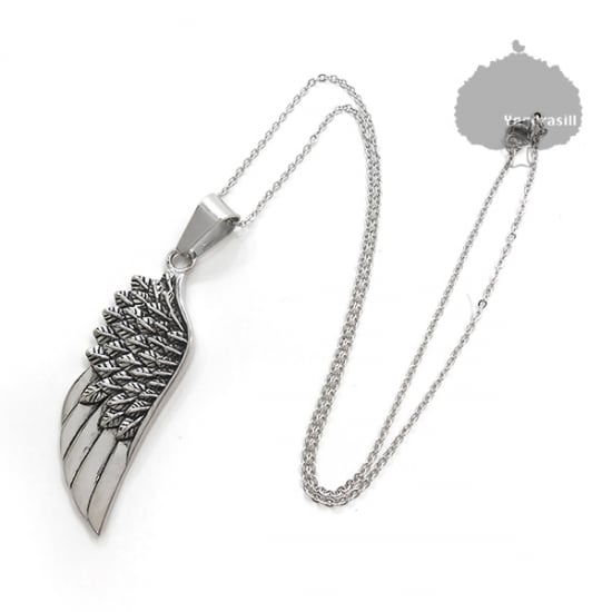 商品名:YGG★新品 フェザーモチーフ ネックレス 羽根 銀色 チタンコーティング ペンダント