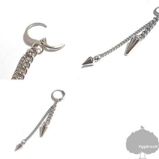 2スパイク スタッズ付き ロングチェーン ピアス シルバー 銀 片耳 シングル