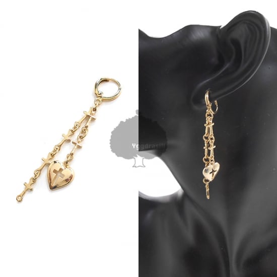 商品名:YGG★新品 ハート パドロック クロスモチーフ ロングピアス 1個 片耳 鍵 ユニセックス