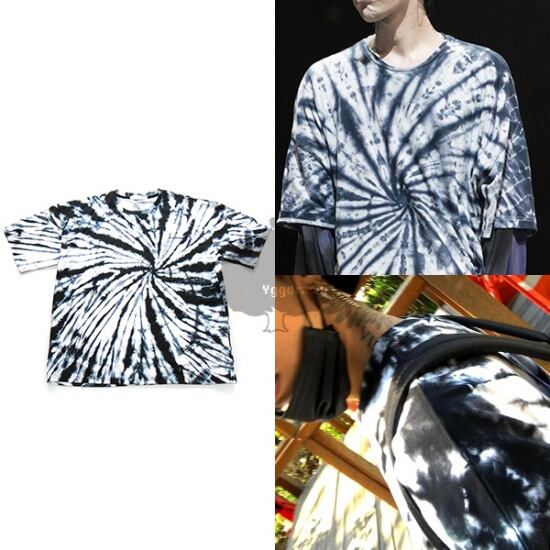 商品名:YGG★人気 タイダイ柄 半袖 ビッグ Tシャツ 黒白 L メンズ オーバーサイズ ビッグサイズ ムラ染め g-dragon GD bigbang トップス ブラック ホワイト
