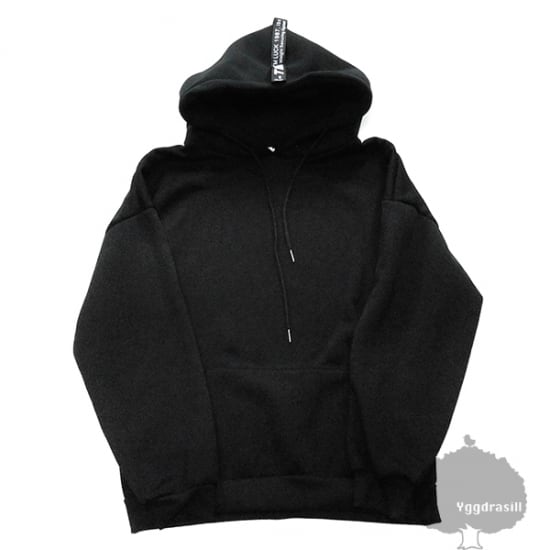 商品名:YGG★バックペイント フーディ パーカー プルオーバー 黒 ブラック バックストラップ付き XL 新品 韓流 オルチャン