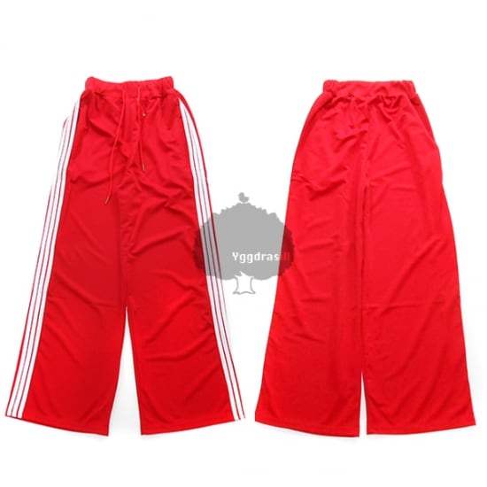 商品名:YGG★サイド 3ストライプ ライン ジャージ パンツ ワイド 赤 白ライン ゴム M ボトム 新品 ボトムス