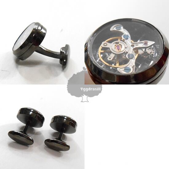 商品名:YGG★ムーブメント 機械式 カフリンクス カフス セット 黒系 父の日 プレゼント 結婚式 二次会 パーティ 新品