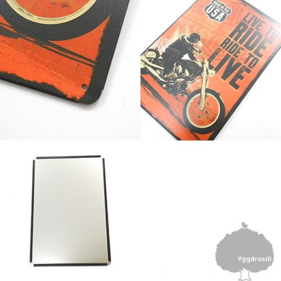 LIVE TO RIDE ブリキ サインプレート 看板 オレンジ スチール ボード アメリカン VIBES バイカー