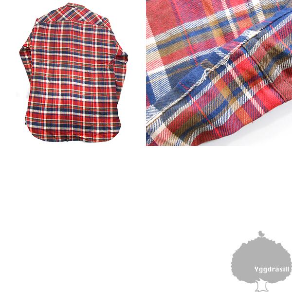 商品名:YGG★ 長袖 チェックシャツ 赤 オレンジ ネルシャツ メンズ M トップス 羽織 FOG型