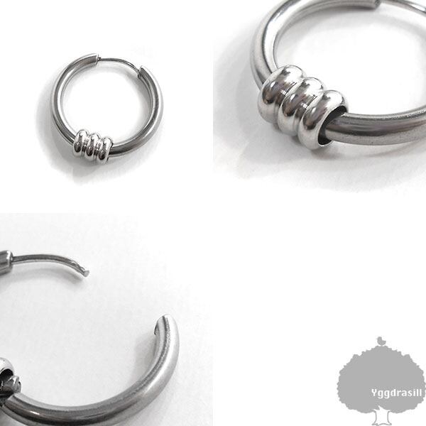 セグメント 3連 フープピアス 銀 B ステンレス 外径20mm 内径16mm 1個 片耳 登坂