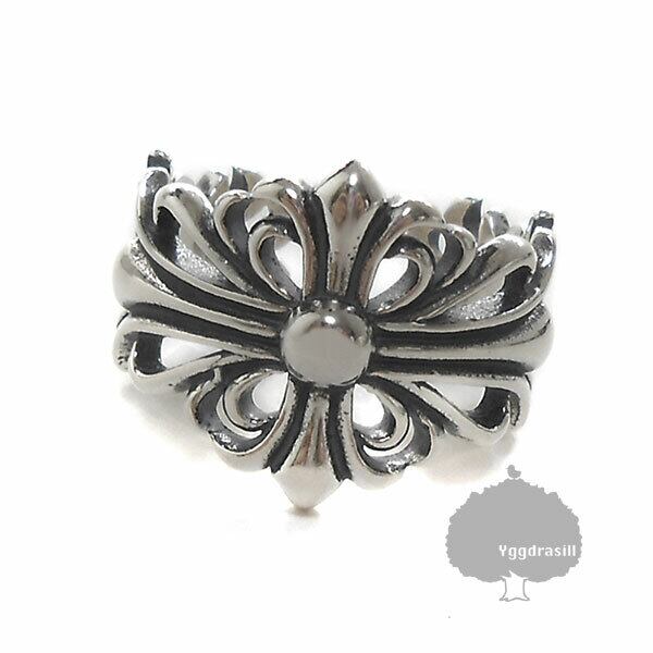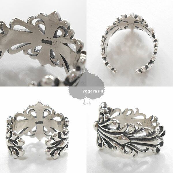 ダブルフローラル クロス リング 十字架 SV 銀 メンズ フリー シルバー 指輪 クロムハーツ好きに