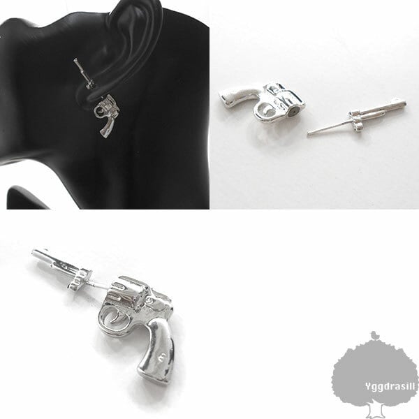 商品名:YGG★新品 拳銃型 ピストル ピアス 銀色 シルバーカラー ユニセックス 1個メンズ レディース 片耳用 シングル