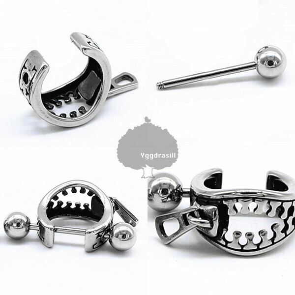 商品名:YGG★新品 ファスナー ジップ シールド ピアス ボディピアス シルバー 銀 サージカル ステンレス 316L 18G イヤーカフ ヘリックス メンズ レディース ユニセックスOK コンク