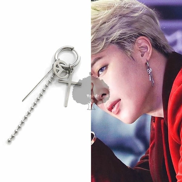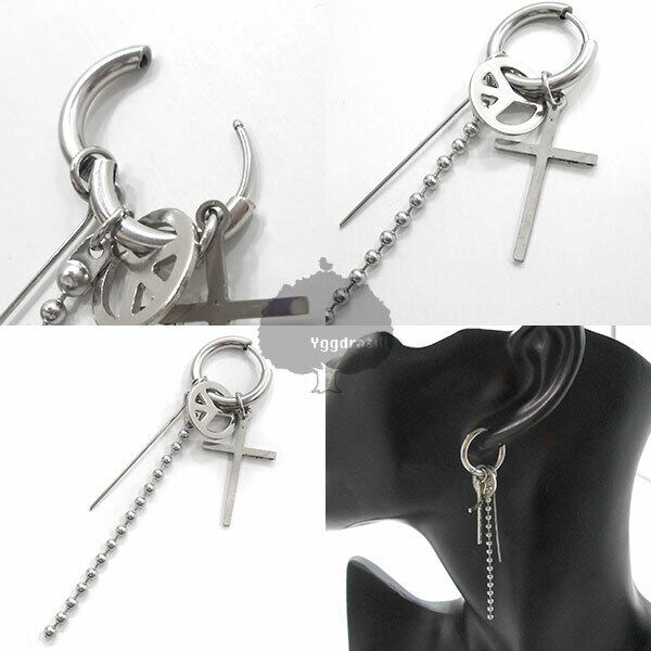 商品名:YGG★新品 PEACE クロス 十字架 バー チェーン 4トップ ピアス 1個 シングル 片耳用 シルバー BTS jimin ジミン着