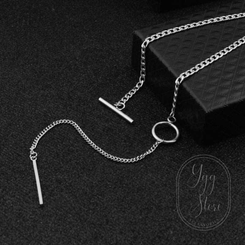 商品名:YGG★新品 ロングバー付き チェーン ネックレス 銀 シルバー 男女兼用 アクセサリー ペンダント NINE PERCENT ジョンジョン着