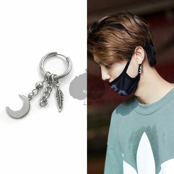 フェザー ムーン チェーン チャーム付き フープピアス 銀 シルバー EXO ルハン エクソ 1個 片耳 シングル
