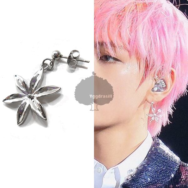 YGG★新品 花柄 ピアス シルバーカラー 6枚 葉っぱ シングル 1個 片耳 BTS テテ V 韓流 ユニセックス
