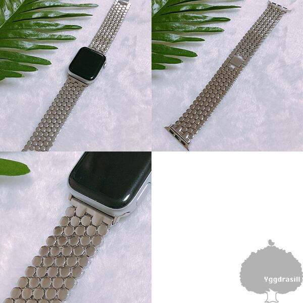 商品名:YGG★ apple watch ラウンドリンク バンド ブレスレット メッシュ銀 シルバー 互換 アップルウォッチ用 サードパーティ コンパチブル 腕時計用