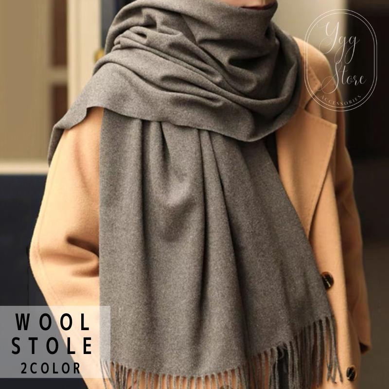 大判 ウール ストール マフラー グレー キャメル 茶系 着物 結婚式 パーティ ショール ギフト プレゼントにも!