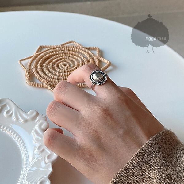 商品名:YGG★ラウンド モチーフ シルバー リング 指輪 フリー シングルリング ワンストーン ヴィンテージ風