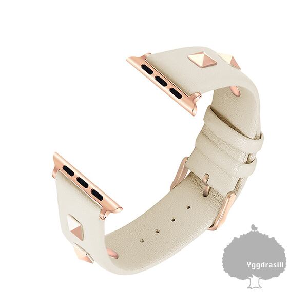Apple Watch 専用 スタッズ付き レザーバンド ベルト 交換用 白 黒 水色 ホワイト ブラック ライトブルー アップルウォッチ 腕時計