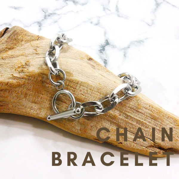 Tバー付き マンテル チェーン 太 ブレスレット ステンレス 全長19cm 幅1cm 腕周り18cm シルバー 銀 鎖 アクセサリー メンズ レディース プレゼント 錆びない サビない bts g-dragon