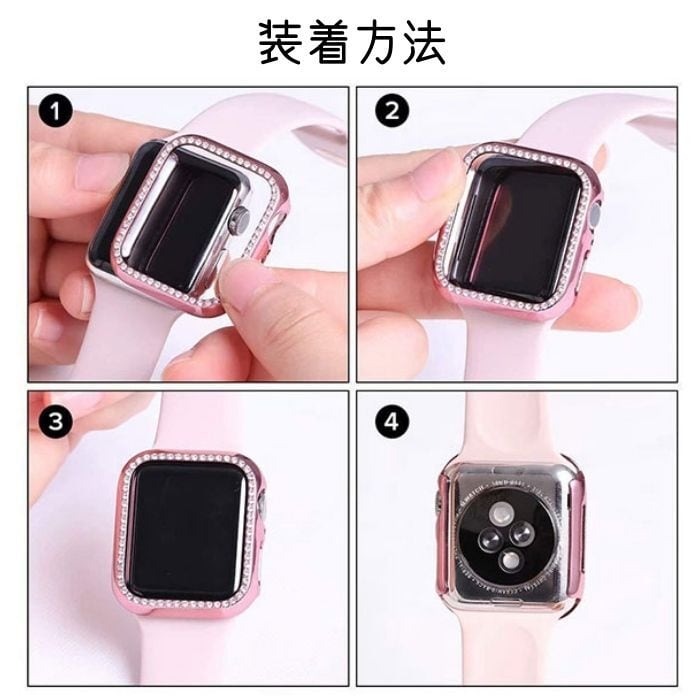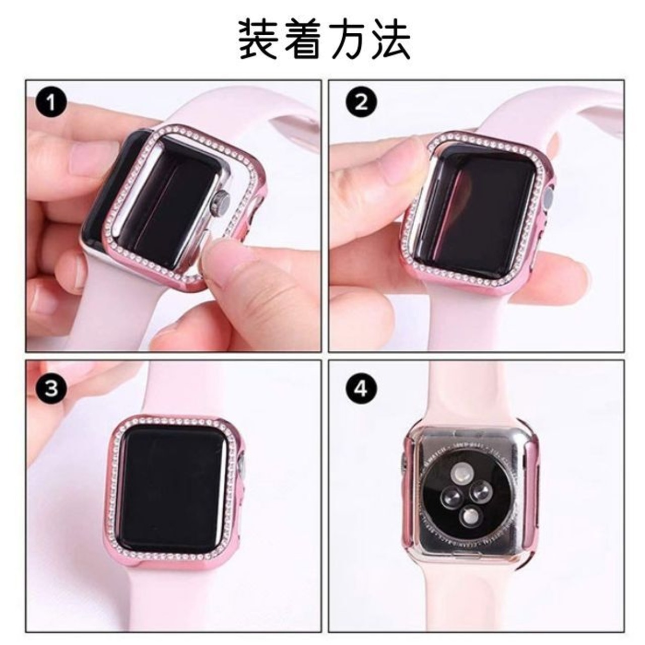apple watch アップルウォッチ ラインストーン カバー 保護ケース シルバー 銀 ブラック 黒 40mm 42mm 44mm 互換 交換 スマートウォッチ iwatch デコ付き 軽量 ダイヤ風
