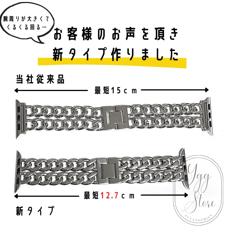 商品名:YGG★Apple watch Wチェーン バンド ショートタイプ ダブル 互換 アップルウォッチ用 ステンレス 短め 交換 シルバー ゴールド ブラック ピンクゴールド 金 銀 黒 サードパーティ