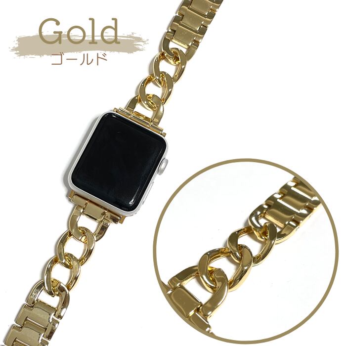 【サイズ調節工具付き】Apple Watch カッティングチェーン シャイニー バンド ベルト チェーン バンド ベルト 調整工具 シリーズ 交換 シルバー 銀 ブラック 黒 ゴールド 金 ピンクゴールド 腕時計用交換ベルト 替えベルト