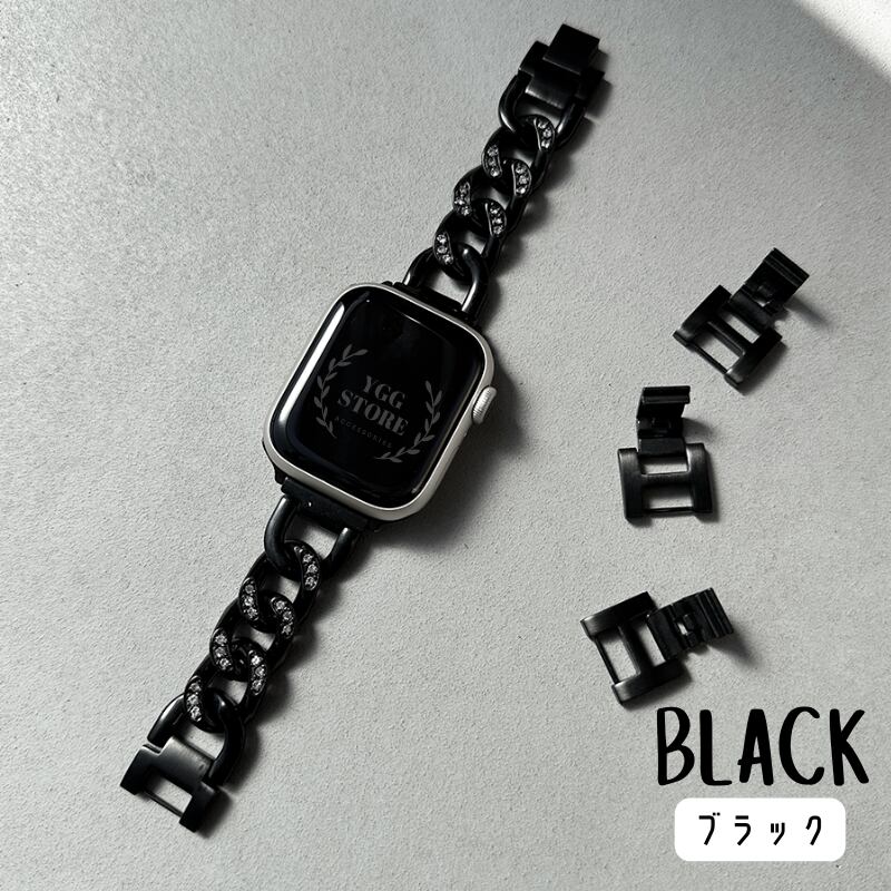 商品名:YGG★アップルウォッチ チェーン バンド ダイヤ ラインストーン セパレート 調節工具不要 ステンレス applewatch キラキラ ダイア 男女兼用 全サイズ対応 シルバー ゴールド ブラック ピンクゴールド ローズ かわいい 簡単装着